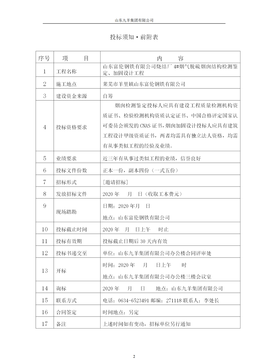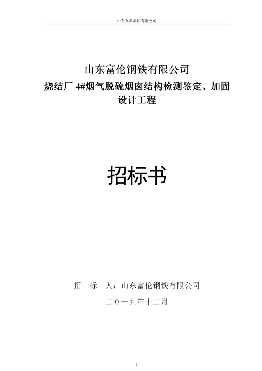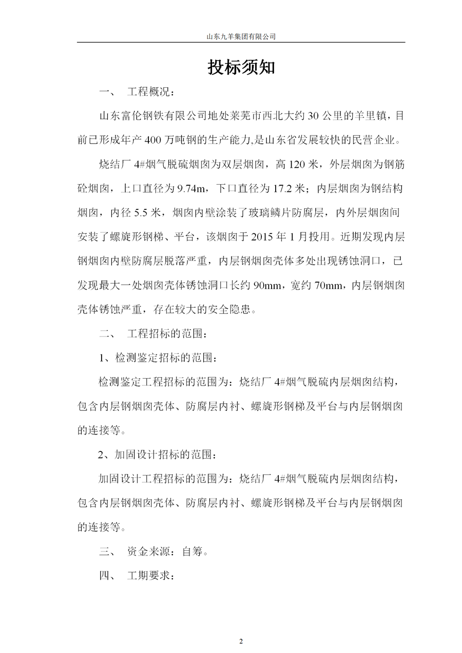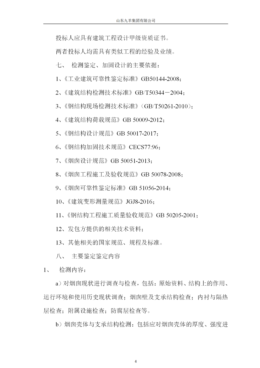 燒結(jié)廠4#煙氣脫硫煙囪結(jié)構(gòu)檢測鑒定、加固設(shè)計工程招標(biāo)書
