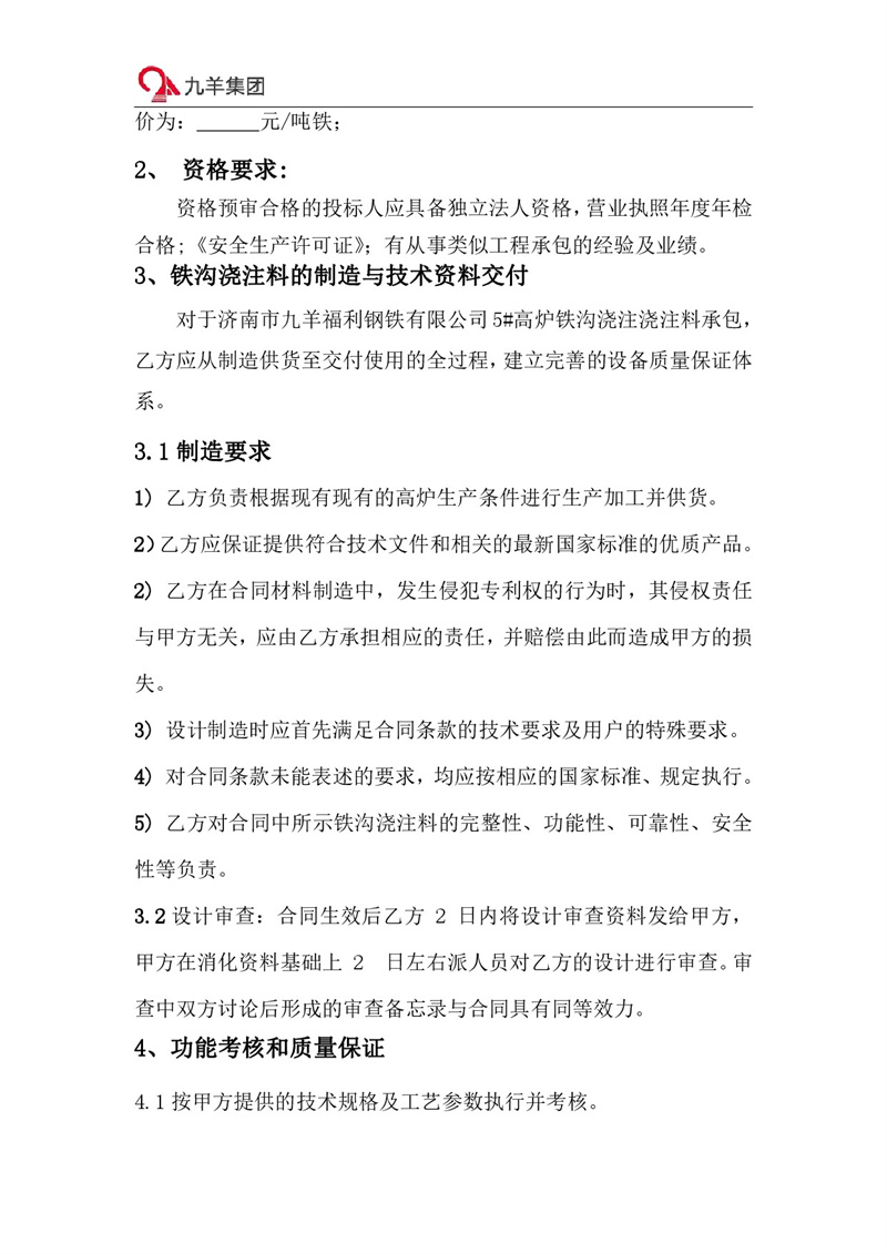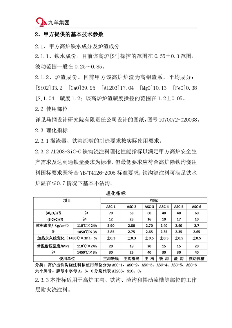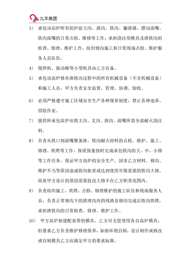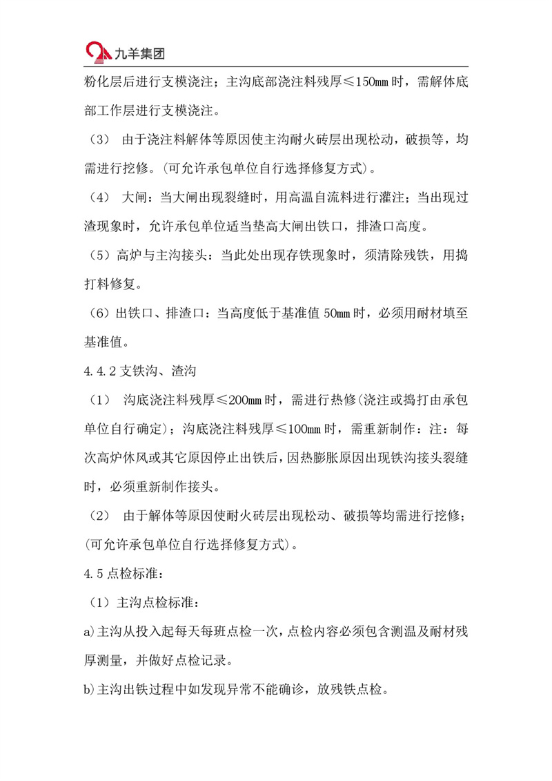 濟南市九羊福利鋼鐵有限公司5#高爐鐵溝澆注噸鐵承包項目