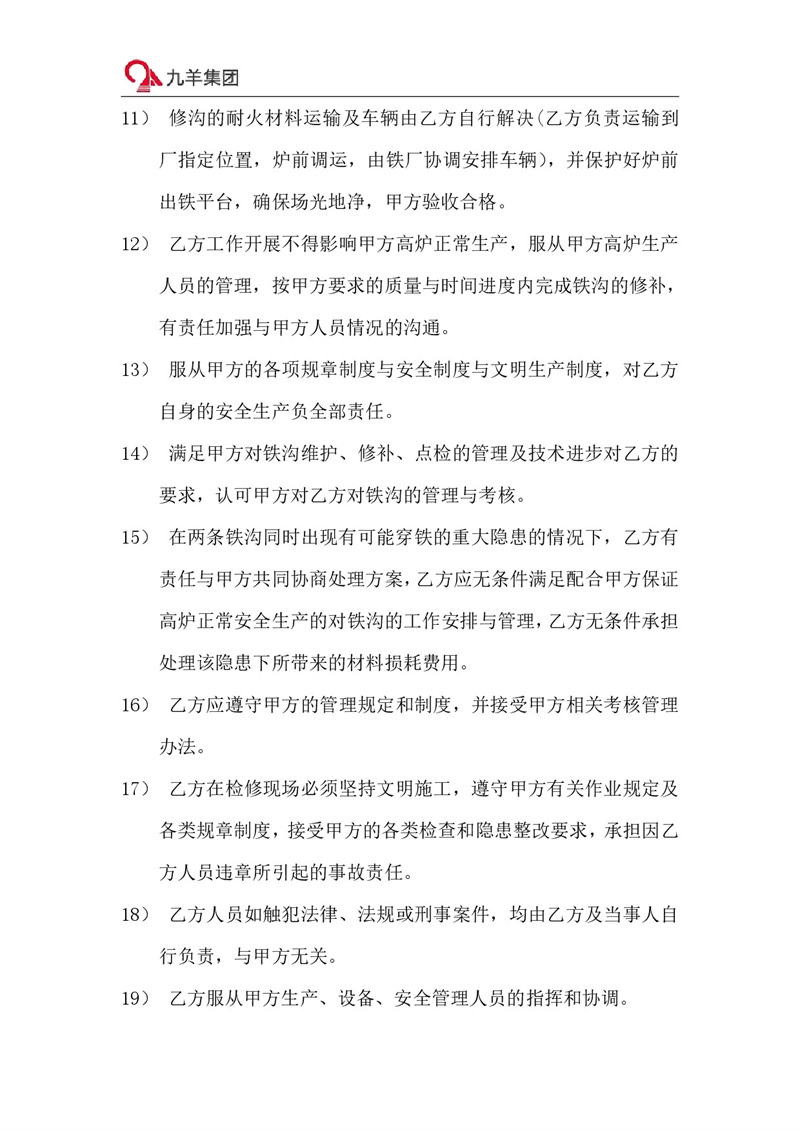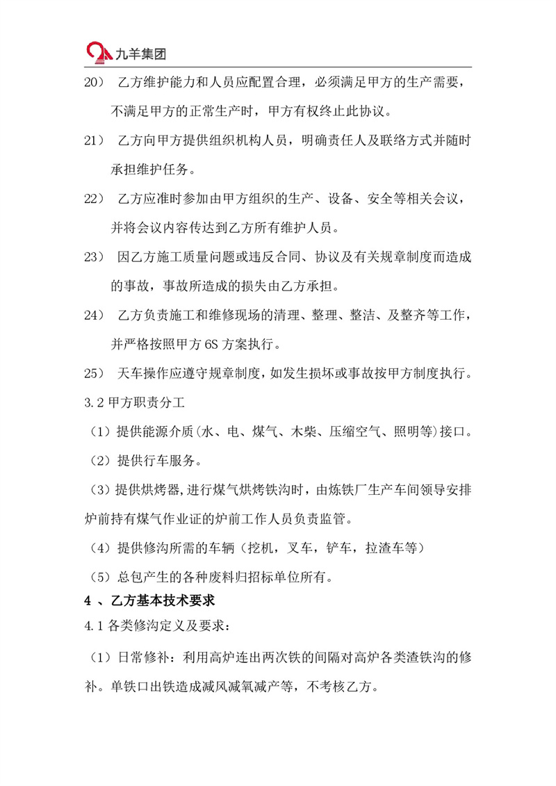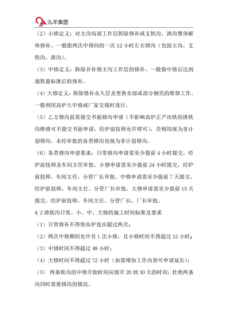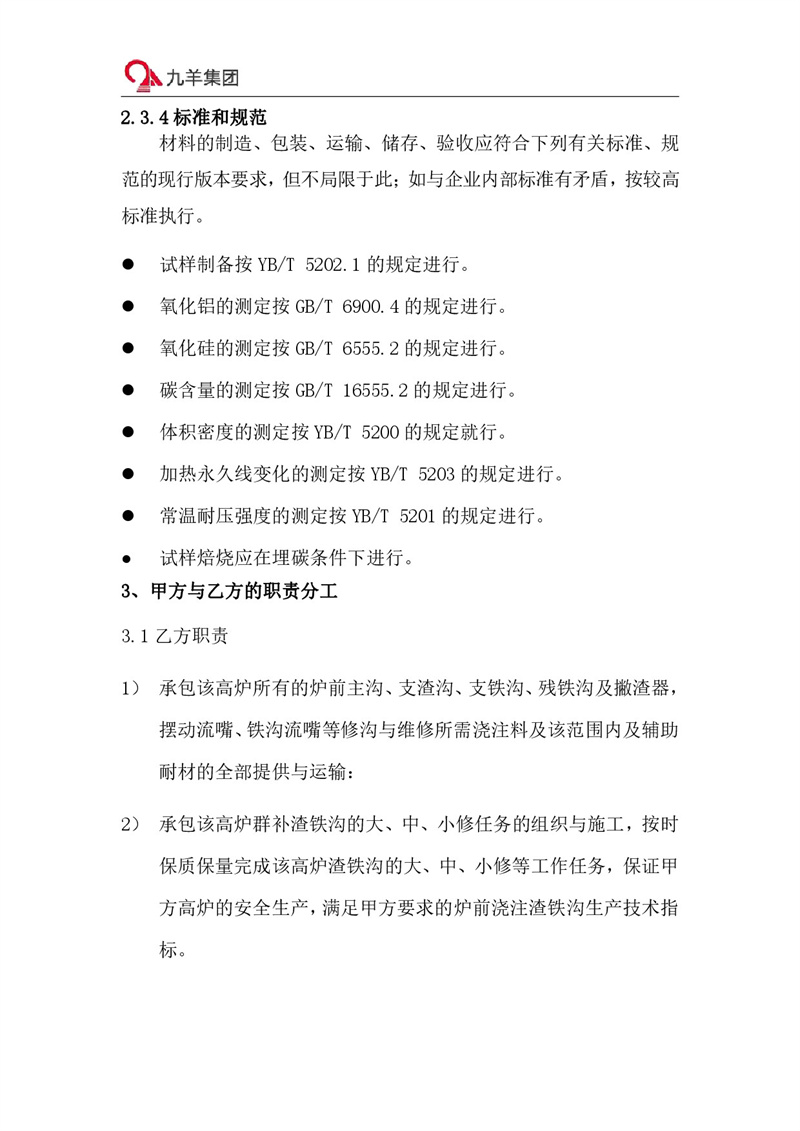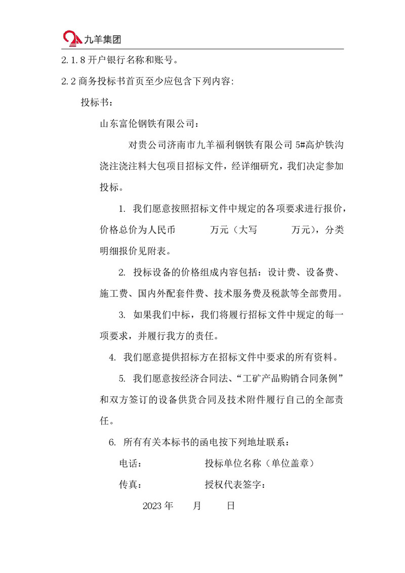濟南市九羊福利鋼鐵有限公司5#高爐鐵溝澆注噸鐵承包項目