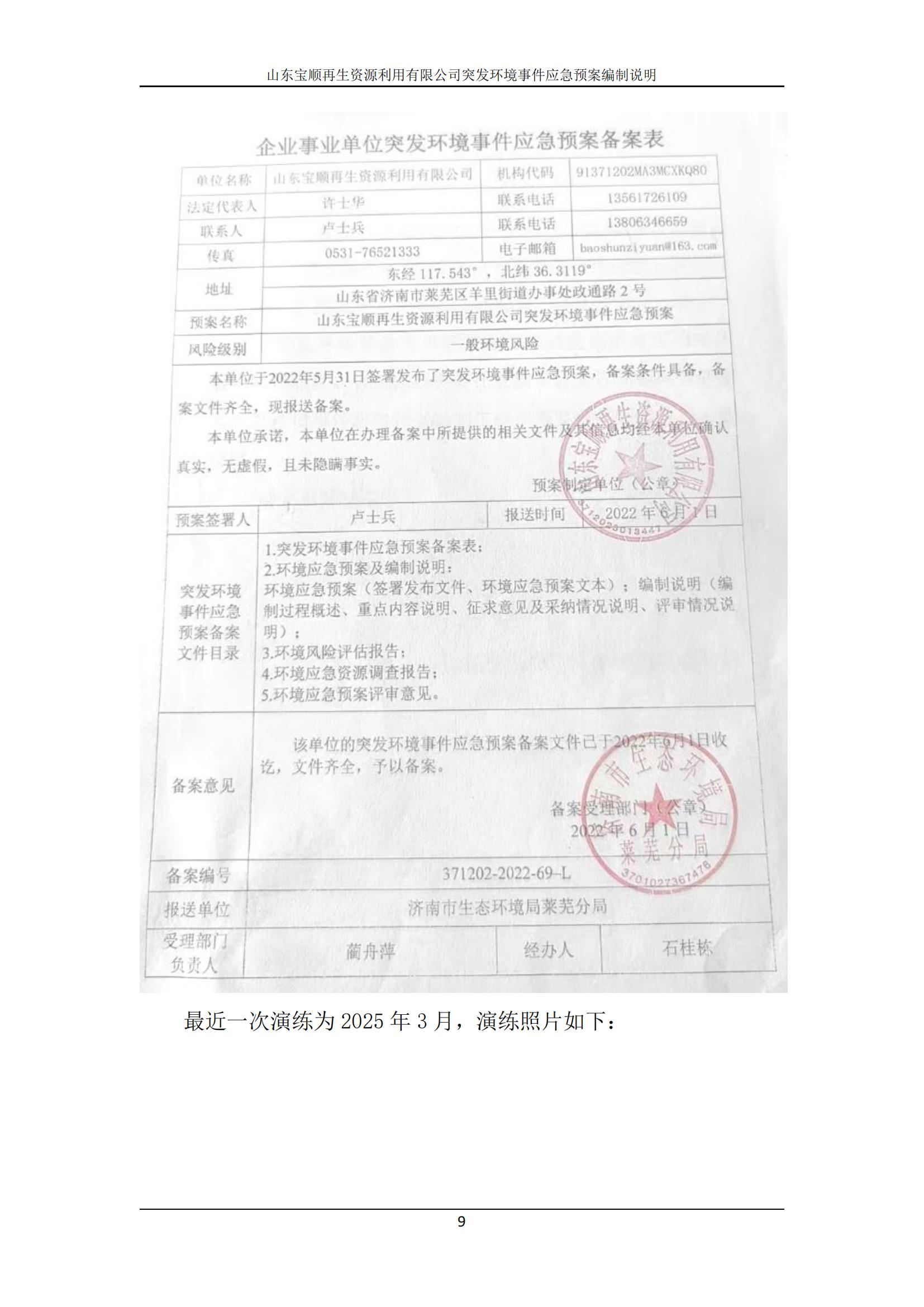 山東寶順再生資源利用有限公司突發環境事件應急預案(2025年修訂版)